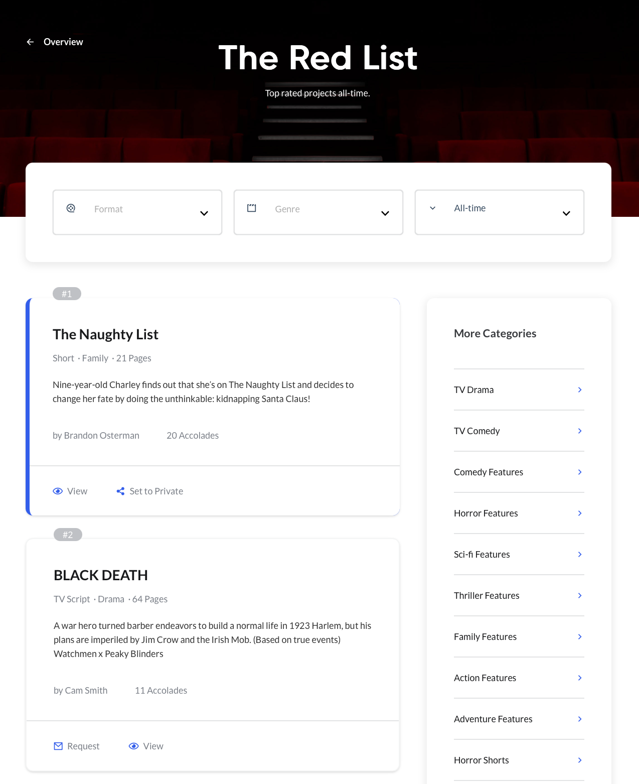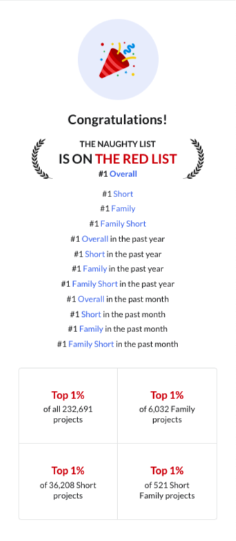 We have some incredible news to share—this April, The Naughty List was officially named the #1 project on Coverfly’s Red List!