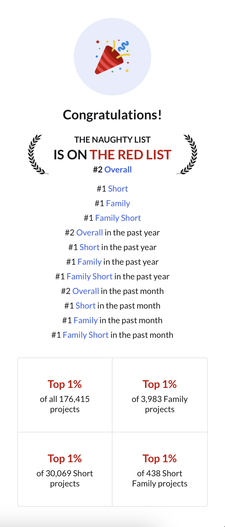 I’m thrilled (and honestly a little stunned) to share that The Naughty List is now the #2 script on Coverfly’s Red List, out of more than 170,000 screenplays.